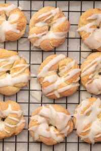These Sicilian glazed taralli are lightly sweet cookies with a crisp exterior and tender interior. Finished with a bright lemon glaze, they are a beautiful