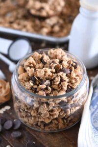 This peanut butter dark chocolate chunk granola is a copycat recipe of the popular Love Crunch granola. It is easy (and a lot cheaper!) to