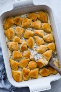 Forget the usual biscuits and gravy, this version takes everything you love and turns it into a hearty casserole. Creamy sausage gravy, buttery biscuits, and