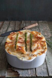 This asparagus lasagna known as ‘lasagne agli asparagi’ is one of my favorite spring dishes with fresh asparagus, a creamy white sauce, cheese and savory